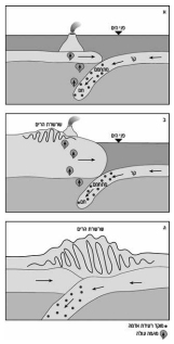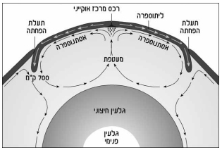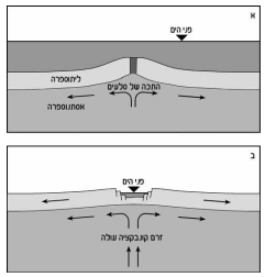 שאלה חשובה היא כיצד מועבר החום מן העומק אל פני השטח. כדור הארץ מתקרר בשתי דרכים עיקריות: הולכה והסעה. נבהיר את ההבדל ביניהן: כשמחממים מוט נחושת בקצהו האחד, קצהו השני מתחמם מהר למדי הנחושת היא אפוא מוליך חום מצוין, ואנו אומרים שהחום המועבר בצורה זו מועבר על ידי הולכה. לעומת זאת, מים או שמן הם מוליכי חום גרועים, ובכל זאת כשאנו מניחים על האש סיר ובו מרק או שמן, המרק כולו מתחמם כעבור זמן מה באופן הומוגני. הכיצד? הנוזל שנמצא למטה, קרוב למקור החום, מתחמם – מתפשט – נעשה קל יותר – צף למעלה – שם הוא מתקרר – צונח שוב מטה – וחוזר חלילה עד שהמרק רותח כולו (ראו איור 3א). החום מובל כאן מלמטה למעלה לא על ידי הולכה (כמו במקרה הנחושת) אלא על ידי הסעה קונבקציה. בסיר ייווצרו תאים של זרמים חמים עולים ותאים של זרמים חמים פחות – יורדים. הסלעים במעטפת, כמו המרק, הם מוליכי חום גרועים, על כן הם מתחממים, וכשהם מתחממים הם גם מתפשטים, וצמיגותם יורדת (אם כי נשארת גבוהה מאוד – הם צמיגיים הרבה יותר מכל נוזל שאנו מכירים מחיי היום יום, אפילו יותר מדבש). אז מתאפשרת במעטפת כדור הארץ קונבקציה (איור 3ב). סלעי המעטפת זורמים אך כמובן לאט מאוד. זהו המנגנון העיקרי של העברת החום מפנים כדור הארץ לשטח פניו.