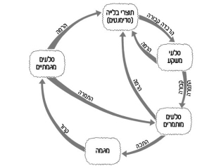 כך תפעלנה שתי המכונות שתיארנו בשני מחזורים (ראו איור 5): הסלעים המורמים נהרסים ונקברים באזורי ההתנגשות אך חוזרים לפני השטח. מחזוריות מאפיינת גם את המים – הם מתאדים לעננים, יורדים כגשם וזורמים כנהרות. "מכונת החום הפנימי" מרימה את ההימלאיה, ואילו "מכונת השמש" יוצרת את הגנגס והאינדוס, את היאנג־צֶה והמאקונג ואת יֶתֶר הנהרות המנקזים (והורסים) את ההימלאיה.