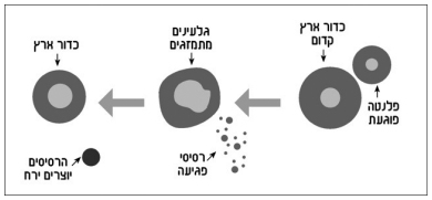 התשובה: הכדור עבר דיפרנציאציה, משורש different הפיכה של גוף אחיד למדי לגוף בעל מרכיבים נבדלים, שונים. כבר הזכרנו כשדיברנו על מקור החום של כדור הארץ כי אותן התנגשויות של פלנטיסימות שיחררו אנרגיית חום רבה מאוד. נוסף על אנרגיה זו היו בכדור הארץ, כפי שהזכרתי קודם, יסודות רדיואקטיביים רבים יותר מאלה המצויים בו היום – קצרי החיים שבהם דעכו זה מכבר. כדור הארץ התחמם והותך באופן חלקי, במילים אחרות הוא נעשה "רך". וכך חומר כבד כגון ברזל היה יכול לשקוע, "ליפול" פנימה לעבר מרכז הכדור וליצור שם את הגלעין הברזלי. הזכרנו כבר כי משערים שבשלב הזה שוב התנגש כדור הארץ בגוף גדול יחסית, שגודלו בערך כגודל מאדים. התנגשות זו יצרה רסיסים רבים, והם נזרקו לחלל, החלו לנוע במסלול סביב כוכב הלכת ארץ ושם התחברו ויצרו את הירח שלנו (ראו איור 7). תסריט זה באשר לאופן היווצרותו של הירח מסביר כמה עובדות (או לפחות מתאים להן). נמנה שלוש: