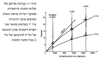 כאשר מרחק כזה מחושב ביותר משלוש תחנות אפשר למקם בדיוק רב למדי את האפיצנטר ואת עומק המוקד (ראו איור 12).