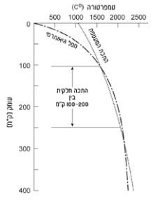 אמנם הטמפרטורה עולה ככל שאנו חודרים לעומק כדור הארץ, אך קצב העלייה אינו אחיד אלא משתנה ממקום למקום: הוא נע בין 50∘C (50 מעלות צלזיוס) לקילומטר ל-20∘C לקילומטר. בחלקו החיצוני של הכדור העלייה הממוצעת היא של בערך 30∘C לקילומטר (ראו גם איור 31). בעומק רב יותר קצב עליית הטמפרטורה מתון יותר. במרכז כדור הארץ, בעומק 6,400 ק"מ, מגיעה הטמפרטורה כנראה לכ-5,000∘C.