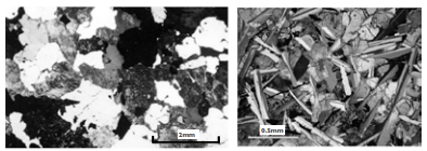 ניתן להבחין בין סלעים וּולקניים וסלעים ּפלּוטוניים על סמך קריטריון פשוט, והוא גודל הגבישים (ראו איור 32): בסלע וולקני כגון בזלת, שאנו מכירים מהגליל, מהגולן וממכתש רמון, הגבישים קטנים מאוד ונראים רק במיקרוסקופ. לעתים חלק מהנתך אף נותר לא מגובש – זגוגיתי. לעומת זאת בגרניט, סלע ּפלוטוני שאנו מכירים מהרי אילת, הגבישים גדולים למדי, ממדיהם כמה מילימטרים ולעתים גם כמה סנטימטרים. אנו מבחינים בהם גם ללא זכוכית מגדלת. הבזלת התגבשה מהר כשלבה נשפכה על פני השטח, והגבישים לא הספיקו לגדול. לעומתה הגרניט הפלּוטוני התקרר אט־אט, משמע התקרר בעומק וגבישיו גדלו.